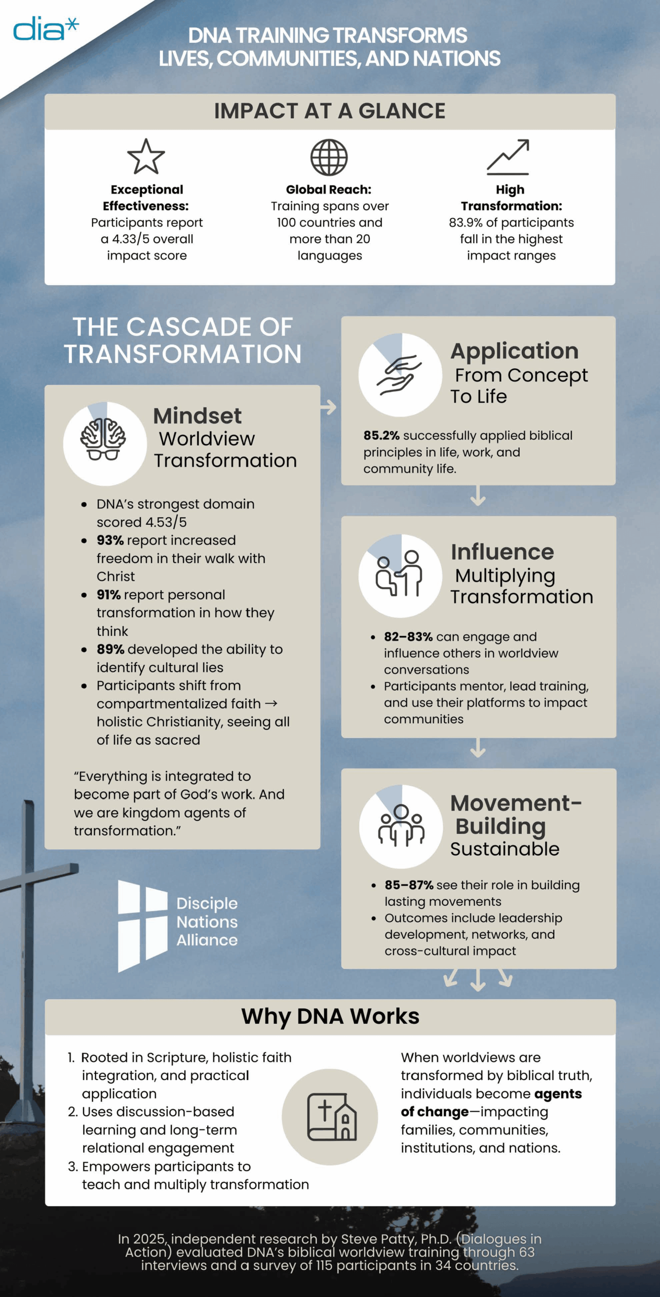 In 2025, a team of researchers joined the DNA’s leadership team to interview 63 Kingdomizers from every global region DNA touches. In addition to illuminating the impact of DNA in their lives, organizations, and communities, the interview data revealed the reasons why DNA is so powerful to effect change in people.