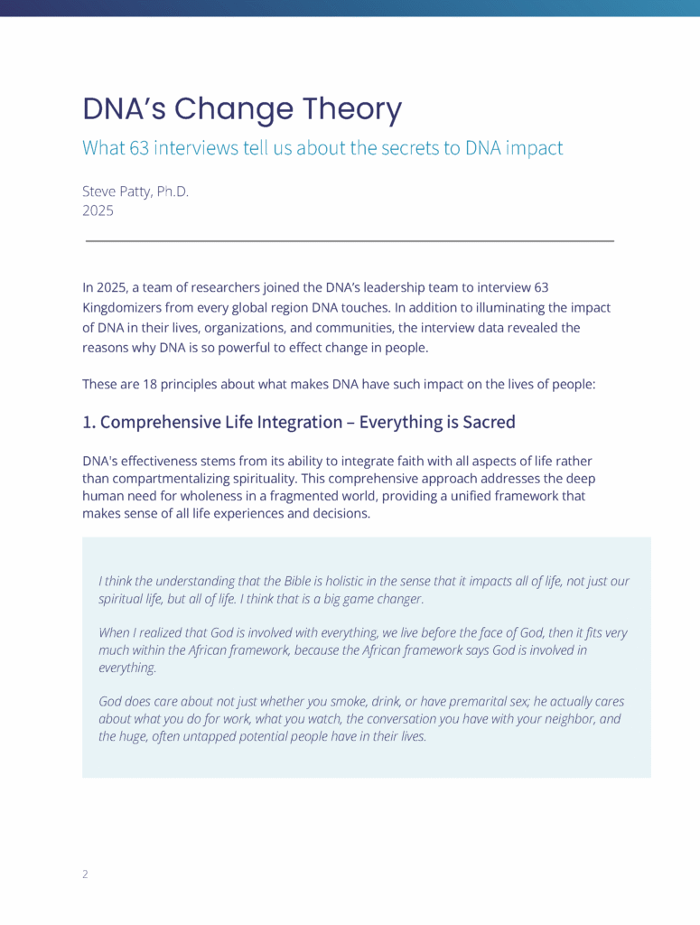 According to independent research conducted by Steve Patty, Ph.D., of Dialogues in Action, the answer is a resounding Yes! The 2025 evaluation of the Disciple Nations Alliance (DNA) demonstrates “exceptional effectiveness in transforming individuals and communities through biblical worldview training.”